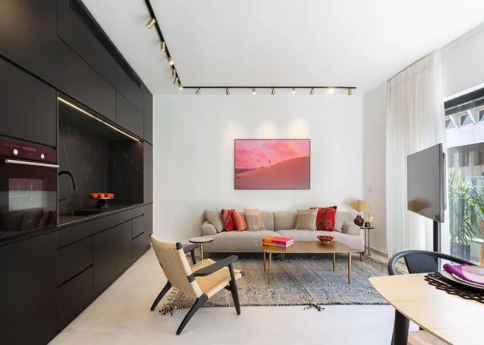 Cet appartement Luxury&Quiet 2BDR near Gordon Beach Tel-Aviv de 70 m² est situé dans le voisinage de "Tel Aviv Promenade" à Tel-Aviv, à 6 minutes de marche de la Plage de Metzitzim.